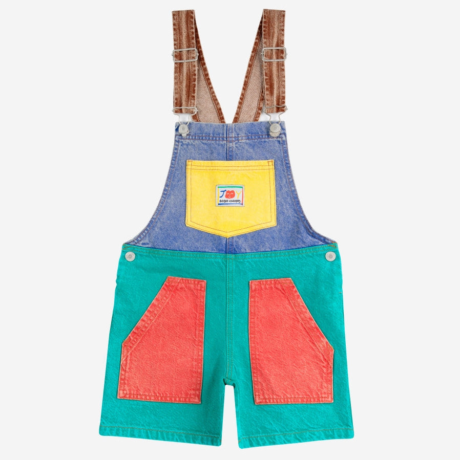 Smiling color block denim dungaree - kids