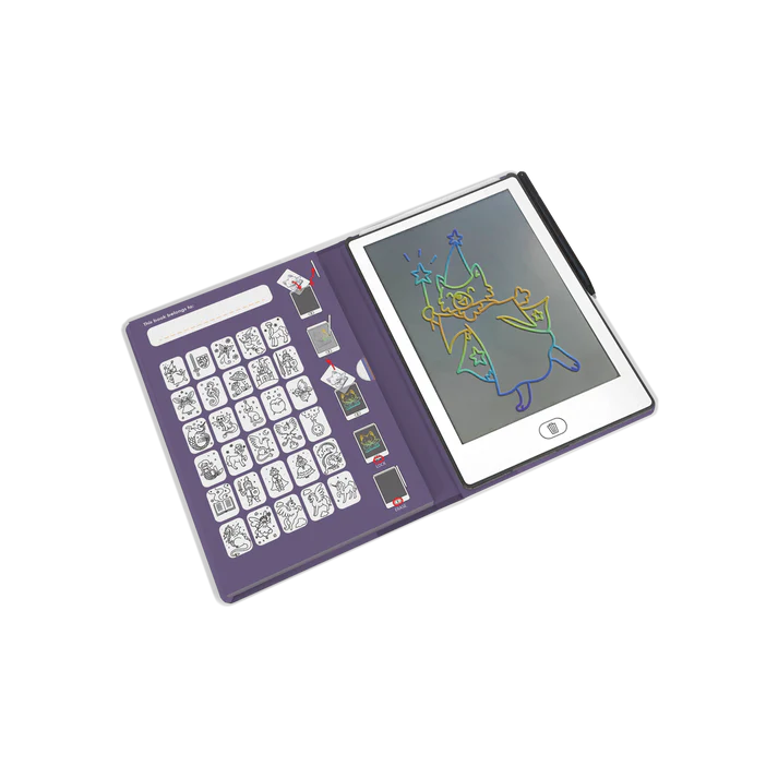 Geef je kind een grenzeloze tekenervaring met KIDYDRAW-MINI, een tekenboek met LCD-scherm met 30 overdraagbare illustraties en 5 unieke thema's. Ideaal om creativiteit en zelfstandigheid te stimuleren en past gemakkelijk in elke tas, zodat je altijd en overal tekeningen kunt maken. Een handig elastiek houdt het geheel dicht, net als een echt notitieboek, en voorkomt dat het karton van zijn plaats glijdt.